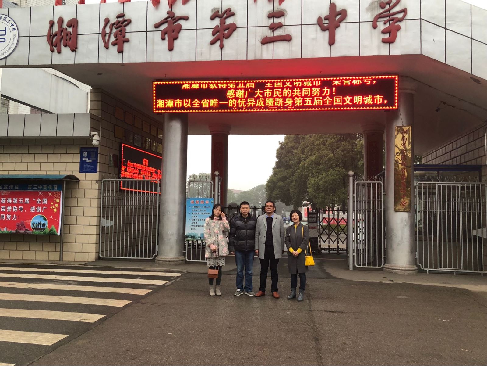 招生与就业处委托,前往我校友好联系高中湘潭市第三中学举行“优秀生源基地”挂牌仪式。管理学院党总支副书记钱祖煜领队,学办主任罗荃老师和就业专干包海燕老师一同随行。湘潭市第三中学副校长陈自力和教务处严艳主任代表校方接收授牌。