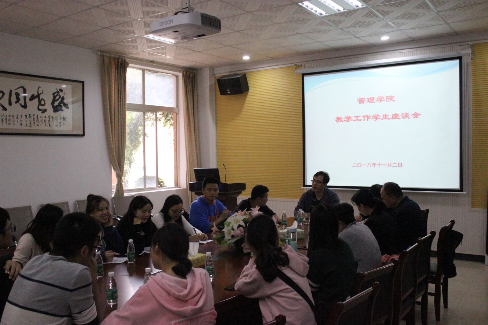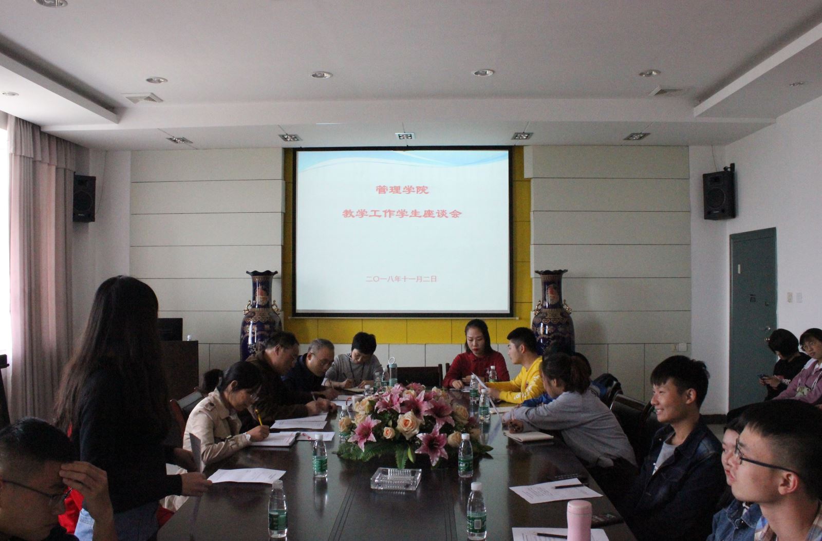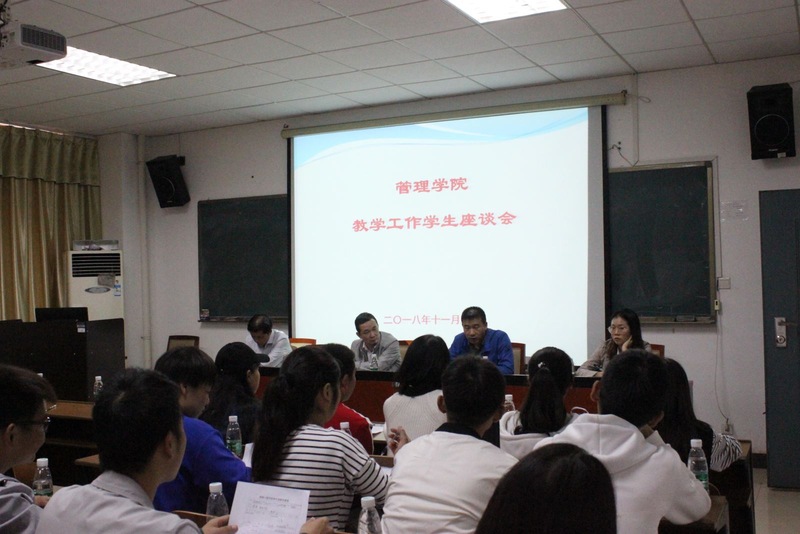 11月2日中午,管理学院召开教学工作学生座谈会分别在F104、G505、G509召开。管理学院全体院领导,各专业教研室主任和教师代表出席了此次会议,管理学院2016级、2017级和2018级班长和学习委员参加会议。
