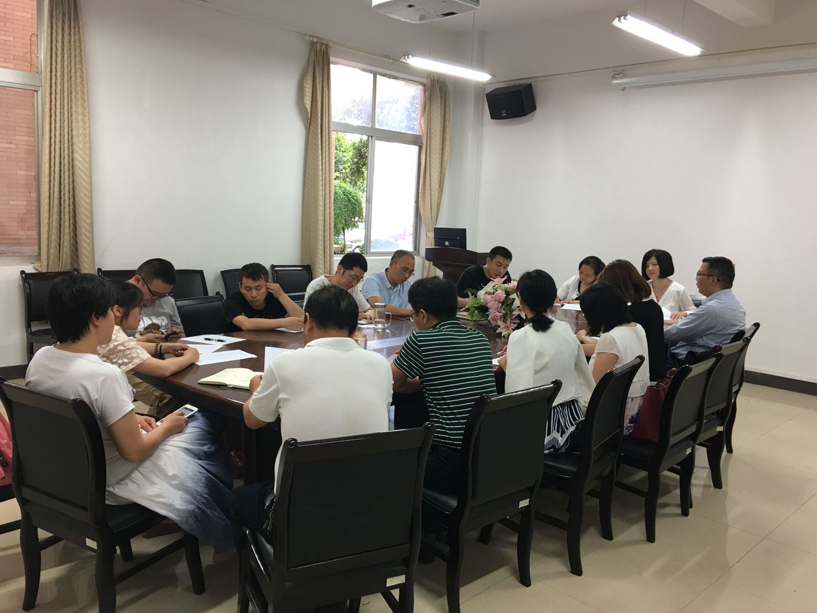 4月25日下午,管理学院在F栋104召开班主任会议。院党总支副书记钱祖煜主持会议,全体辅导员和班主任老师参加会议。