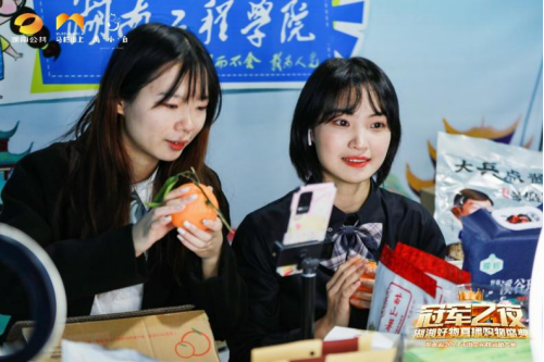 精心组织,通过线上线下宣传,吸引各学院的1000余名学生参加。参赛的选手线上组成16支直播团队,在抖音、淘宝上进行直播,累计曝光量达100余万次。线下开展摆摊设点销售、进班营销、班级团购等活动,积极邀请师生参与进来,用行动帮扶湖湘地区的农特产品打开销路,做到高校助力乡村振兴。