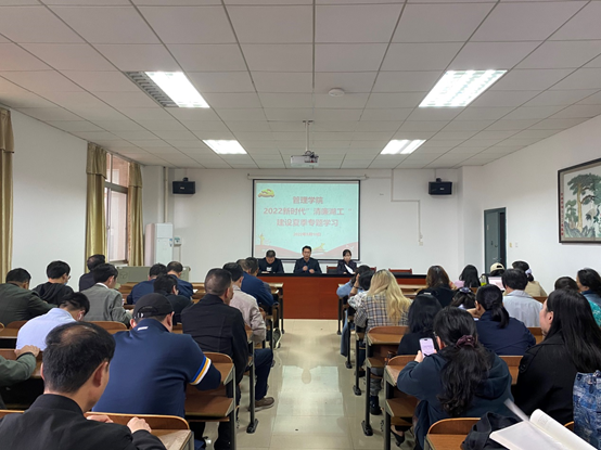 5月10日下午,管理学院全体教职工在G505参加新时代“清廉湖工”建设夏季学习,在管理学院书记余博的带领下,与会人员学习了《关于加强对“一把手”和领导班子监督的若干措施》的通知、《关于推进全省清廉学校建设的实施意见》的通知以及典型问题通报。