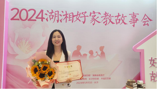 5月15日,2024年湖湘好家教故事会暨湖南省家庭教育指导精品课程竞赛颁奖典礼在长沙举行,湖南省妇联党组书记、主席黄芳出席并讲话。省人大常委会委员、社会委副主任委员龚健出席活动,省人大社会委、省委宣传部、省教育厅、省民政厅、省财政厅、省人社厅、省妇联等单位有关同志,以及各级最美家庭、家庭教育指导讲师参加活动。由我校管理学院教师李莉主讲的课程《养育一个身心健康的孩子》获2024年湖南省家庭教育指导精品课程竞赛二等奖,并作为湘潭市获奖代表参加颁奖典礼。