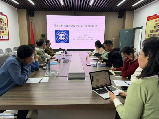 老师做了题为“国家社科项目选题设计思路:案例与解读”的讲座,学院年轻骨干教师参与讲座。