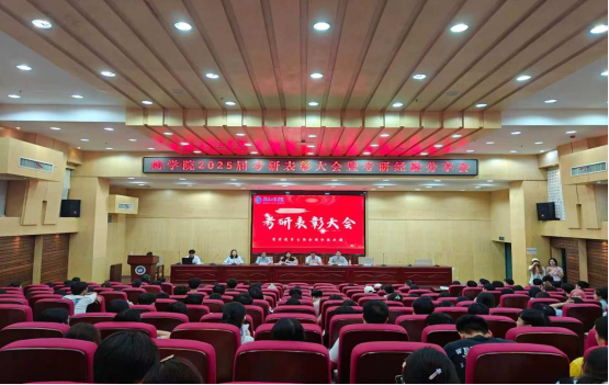 在图书馆二报告厅隆重举办2025届考研表彰大会暨经验分享会。院长刘主光、党委副书记谭超、副院长谭赛、全体学生辅导员及学院大二、大三学生参加。