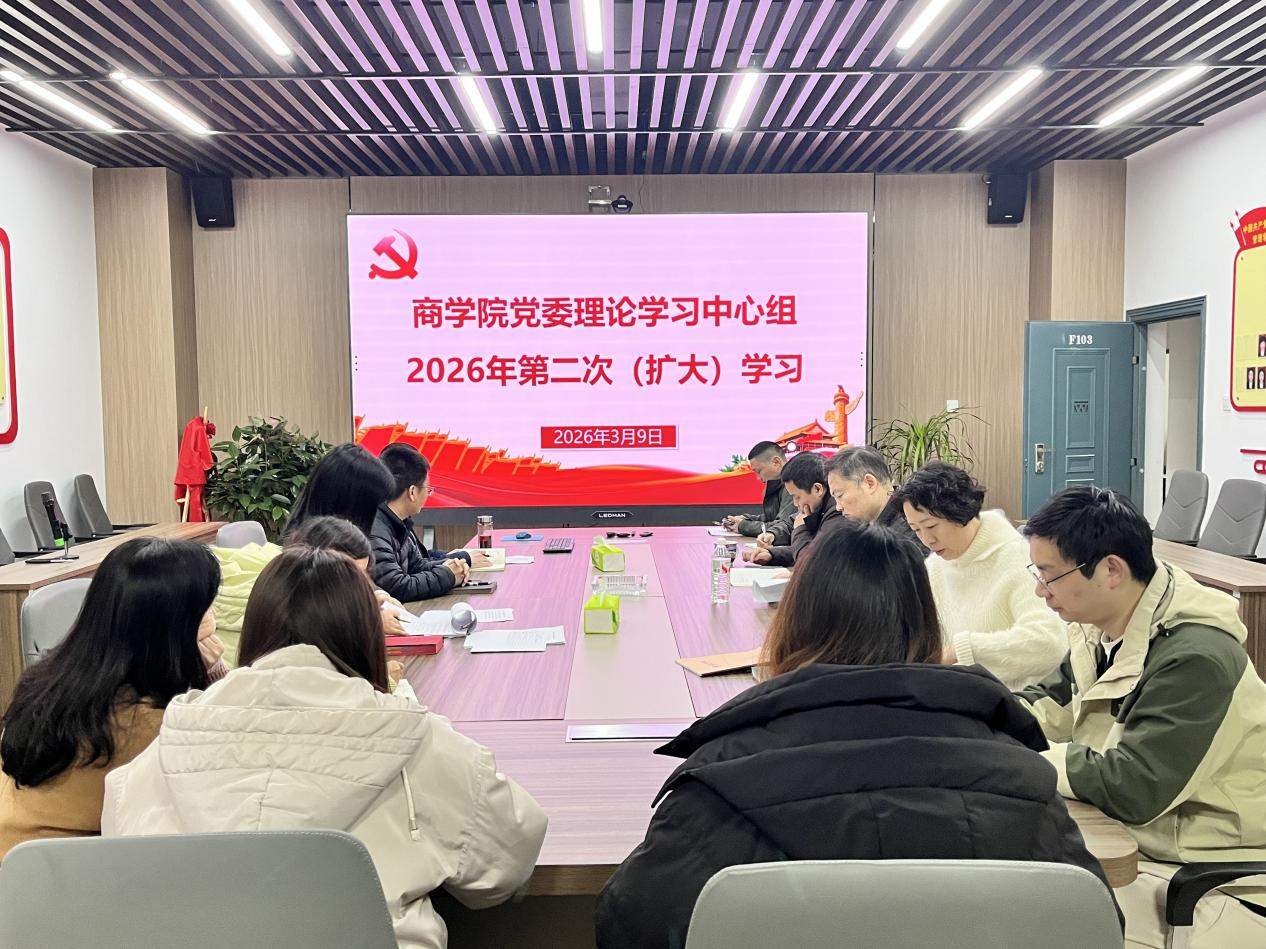 在F103会议室召开2026年第二次党委理论学习中心组(扩大)学习会议。学院党委书记徐运保主持会议并讲话,副院长(主持行政工作)潘立军、院班子成员,党委理论学习中心组成员及各基层党支部书记参加学习。