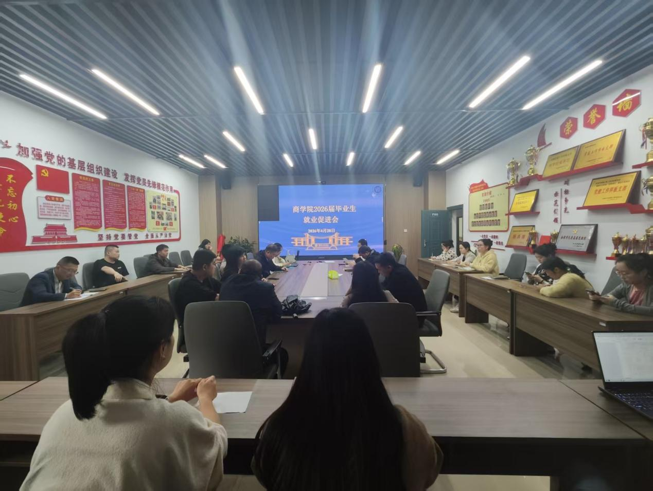 在F103会议室召开2026届毕业生就业促进会。院党委书记徐运保、副院长(主持行政工作)潘立军、副书记谭超、副院长曾贵、副院长谭赛、就业专干包海燕及全体辅导员、毕业班班主任参加会议。会议由谭超副书记主持。