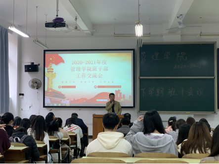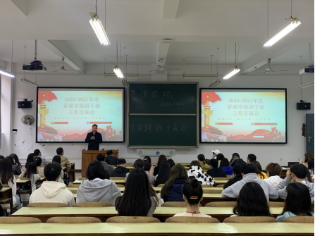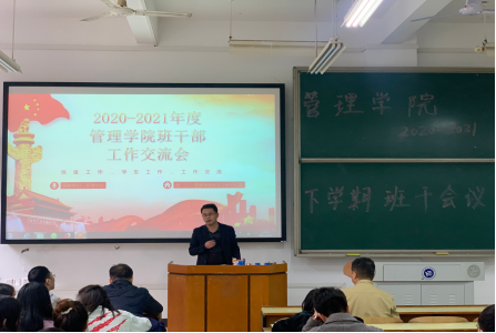 为逐步提升管理学院班级整体建设,增进师生交流。2021316-17日,管理学院在新、南校区组织召开班委工作交流大会。会议由党委副书记张宏主持,党委书记余博、副院长潘立军、学办主任谭超、全体学办辅导员及2018-2020级各专业班级班长、团支书、学委参加会议。