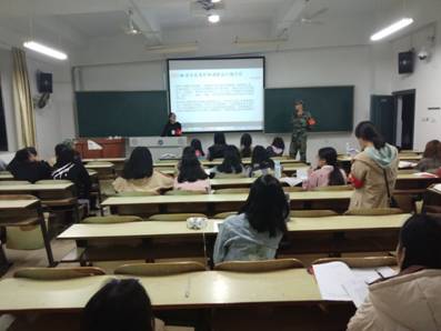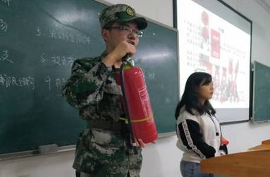 今晚19点宣讲人们来到了物流管理专业所在的C107教室。国旗护卫队的队员们在管理学院安全督察部的协助下,通过简洁明了的演讲为同学们讲解了学校各个地方,如教学楼、食堂和寝室等地的消防器材的位置,并且现场示范了如何使用消防器材。