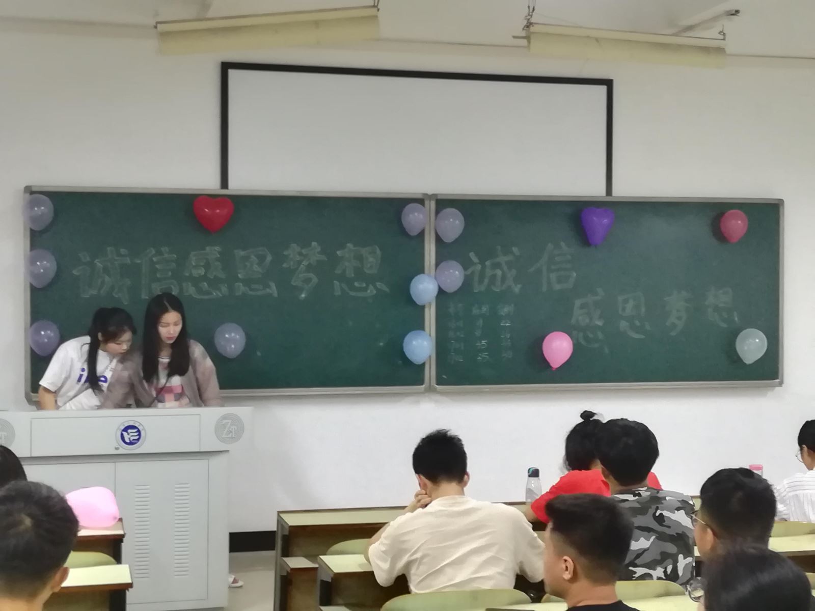 管理学院为强化学生诚信意识,培植学生感恩情感和奋斗精神,于2018年5月22号晚在教学主楼分专业召开了以“诚信、感恩、梦想”为主题的学生班会。