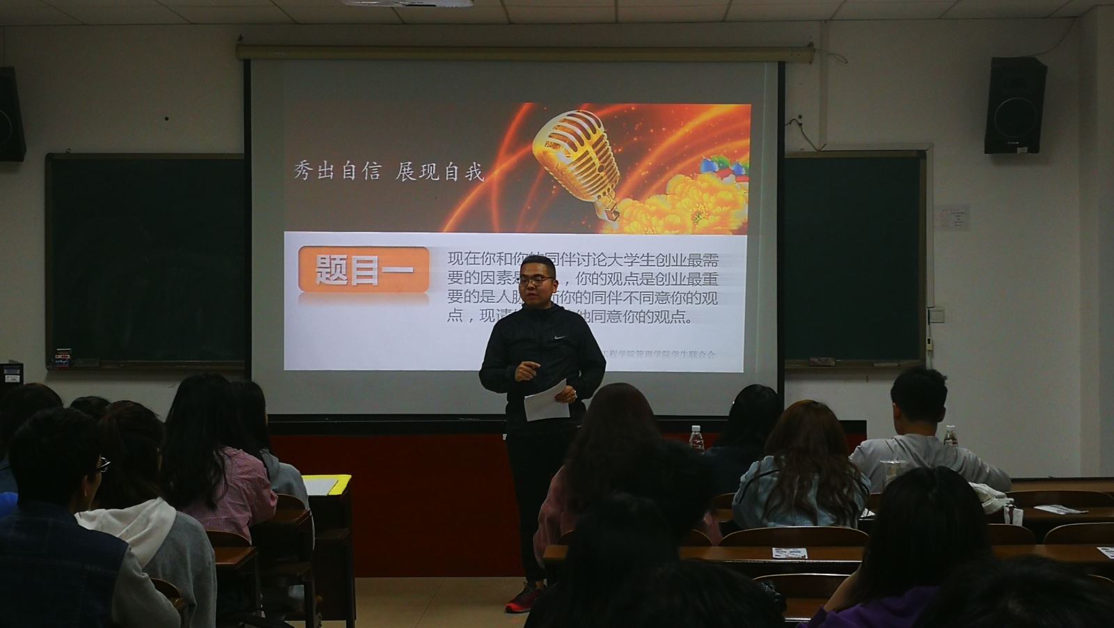 管理学院学生联合会主办、管理学院学生联合会实践部及就业指导部承办的“我是演说家”复赛在新校区G505教室正式拉开序幕。此次比赛旨在训练学生们的语言表达能力和逻辑思维能力,为日后步入社会打下坚实的基础。