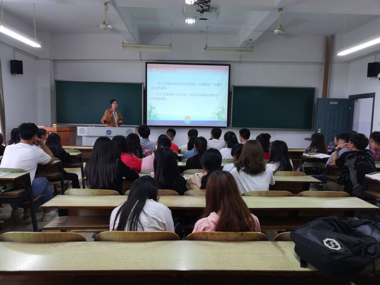 动员大会后,各班班主任积极响应,分别对本专业的学生组织召开了“做最好的自己,创一流学风”的主题班会。在本次班会中,班主任讲述了五严禁精神以及管理学院“六位一体”学风建设内容。班会强调本次活动旨在提高学院学生整体的学习状态,让同学们更加积极主动学习,提升学院的整体素质,不论是到课率方面,还是课堂纪律方面,都要求学生争取做到最好。