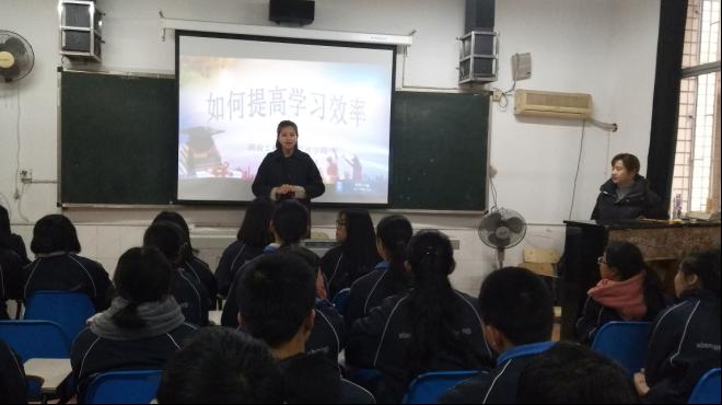 12月13日上午,管理学院学办黎博老师和包海燕老师带领学生代表前往湘潭市第二中学进行提高学习效率的讲座。来自人力资源1702班宣讲人林宇婕同学就如何提高学习效率给同学们提出了针对性的意见和建议。湘潭市第二中学的老师和同学参加了此次讲座。