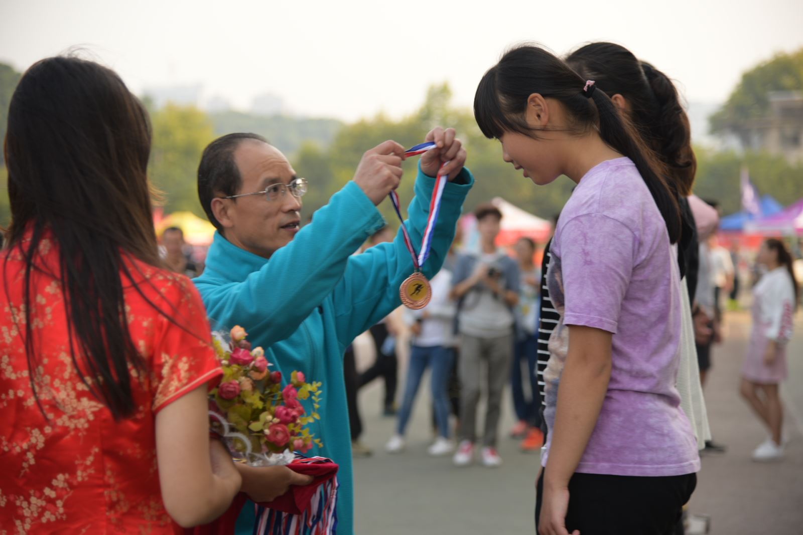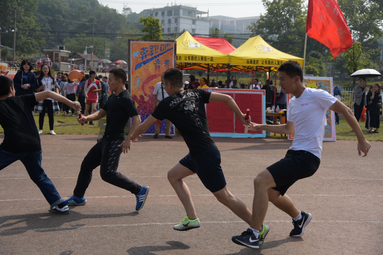赛跑上你们矫健的身姿吸引着每个人的视线,叩动每个人的心弦,你们在赛场上肆意挥洒青春。