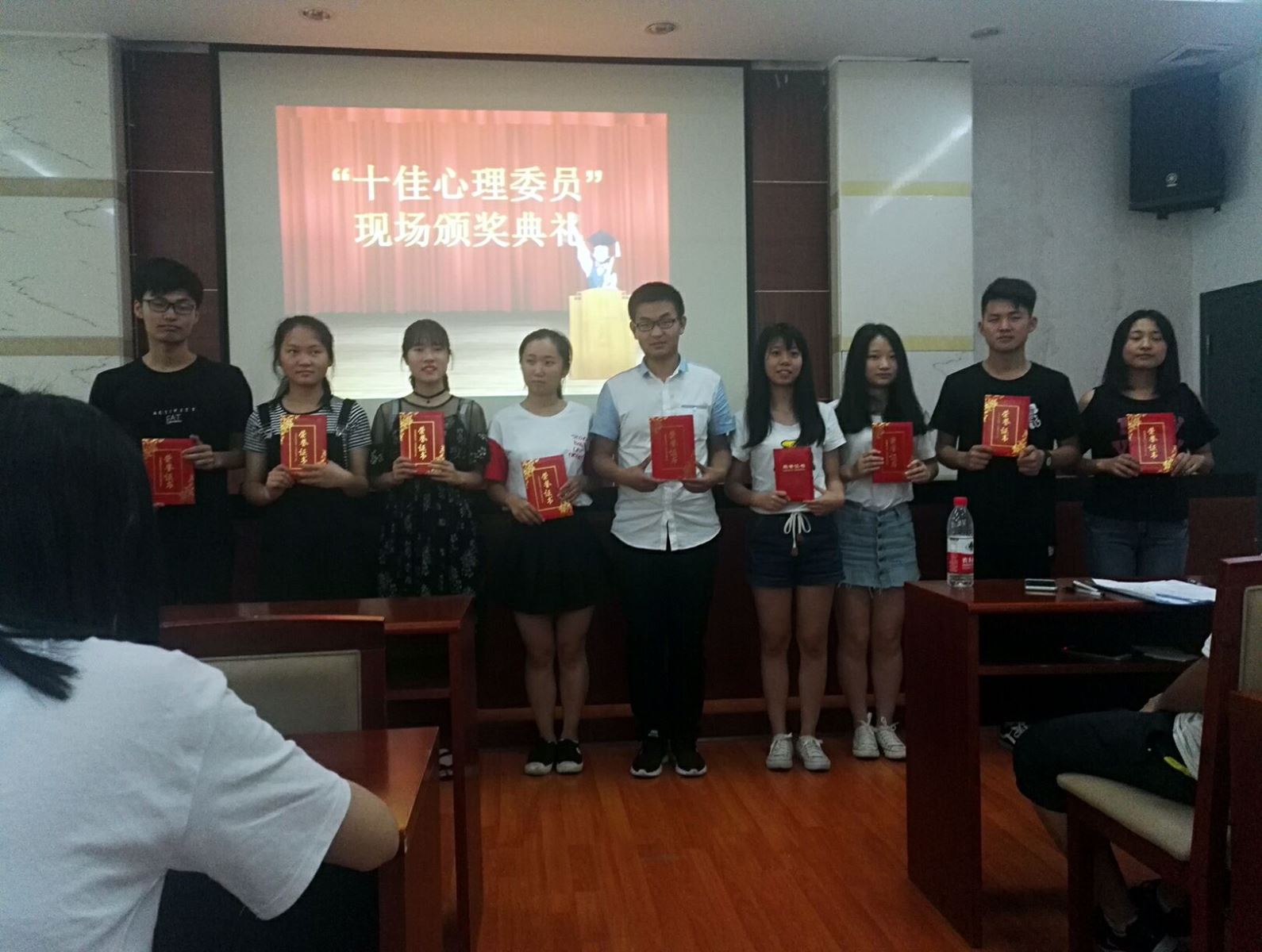 人力资源管理1602 梅良栋 和市场营销1502 黄惠佳表现突出,获评校十佳心理委员。