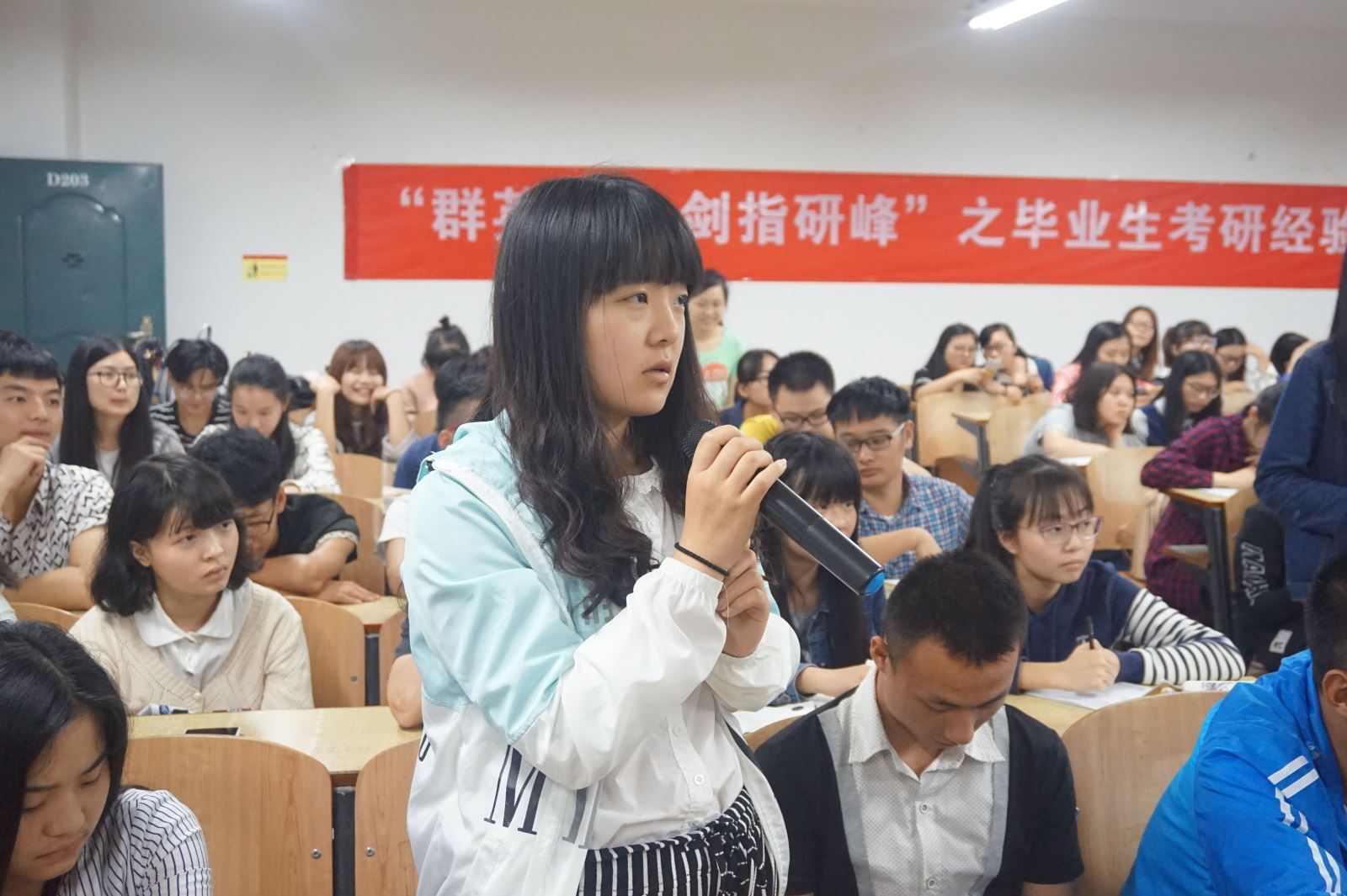 本次交流会,除了嘉宾个人经验讲述外,还有很多观众现场提问咨询,针对同学们面对考研的疑问学长学姐和老师们都一一做出了精彩的回答,还现场留下了联系方式,有想考研的同学,可以和其私下深入交谈。