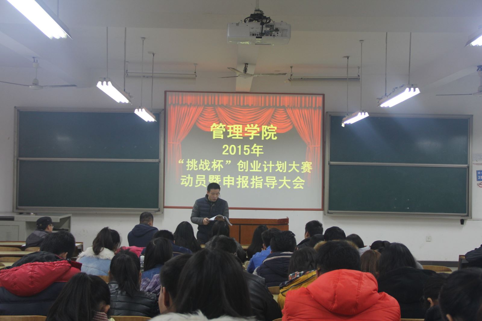 为了进一步提高管理学院学生的科学研究水平和成果转化能力,培养一批具有创新意识、实践能力和创业精神的创新人才,激发大学生创业意识和自主创业的热情,2015年12月1日下午,管理学院在新校区D栋201举办“第六届‘挑战杯’创业计划大赛动员暨申报指导”大会,学院党总支书记卢明纯出席会议,党总支副书记钱祖煜主持会议,学办主任罗荃、团总支书记宋志航、学生会干部、SIYB学员、及部分项目团队成员参加会议。