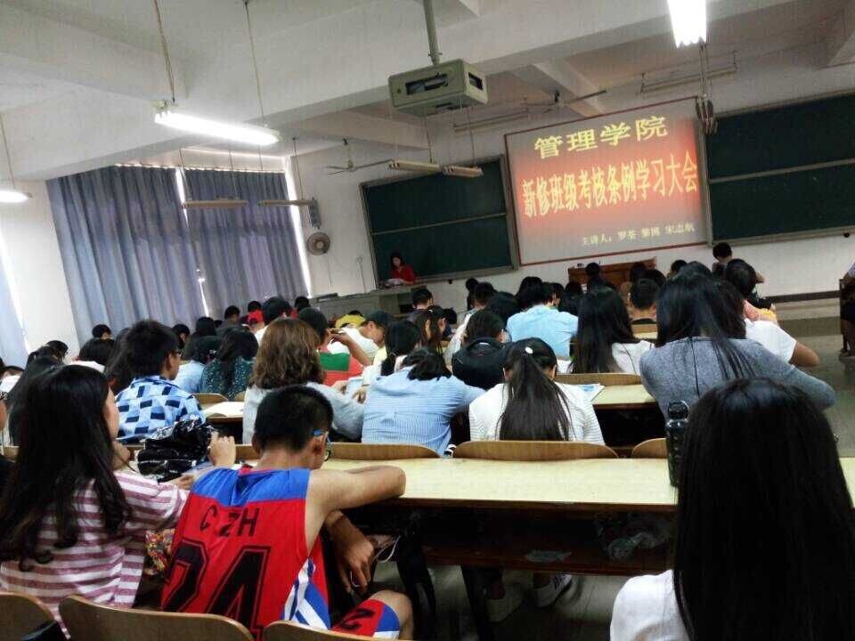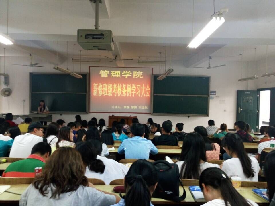 班级考核条例涉及内容为:学风建设、课外科技活动、体育锻炼与竞赛、宿舍管理、教室卫生、班主任工作、班级责任、宣传工作八个方面。考核原则为每周考核、每月公布、每学期评比,考核结果作为班级及个人评奖评优的重要依据。参会的各班班委和学生会各部门部长们在会议期间都认真地做好了笔记,纷纷表示将组织班级同学认真学习,严格贯彻执行,共促管理学院优良院风、学风。