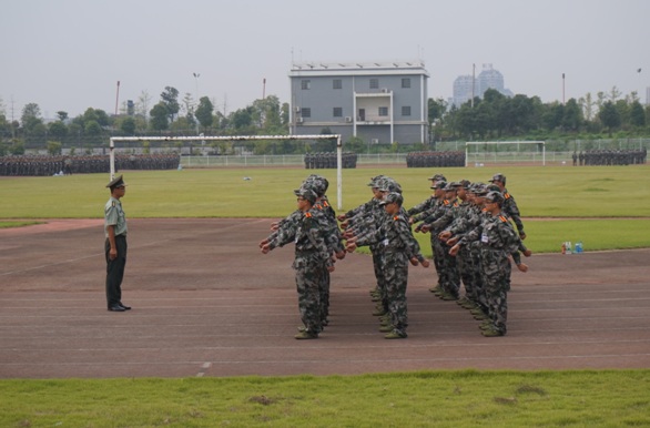 海洋迷彩、笔直的身形和坚定的眼神勾勒出军训场上一道靓丽的风景线。将军姿当作一种不屈的姿态,将齐步当作一种进取的姿态,将正步当作一种奋发的姿态。朦胧雨雾中,我们依然能看到教官严格训练的场面,新生刚毅充满活力的脸庞,坚定不言放弃的神情。这是属于管理学院2015级新生的独特风采。