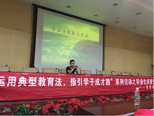 为了进一步营造积极向上的学风。管理学院于2015年6月9日晚7点,在新校区二报告厅召开了2015届优秀毕业生经验交流会。此次经验交流会有幸邀请到了考上了暨南大学研究生的谭泽宇学长、考取公务员的汤懿学长、优秀毕业生朱瑞丽学姐、毕业生优秀干部王岳学长以及英语四、六级考试大神张铭文学长。通过他们的故事,分享他们的优秀经验,为同学们指明努力的方向。