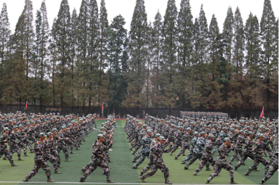 南校区2021级新生军训汇报演出在南院操场举行。麻豆成人网