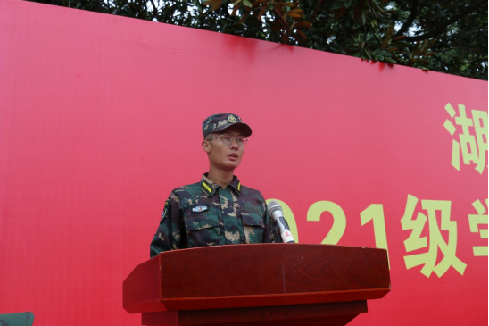 2021级工商管理专业刘彦成同学作为军训学员代表发言。他分享了军训的经历与感悟,他表示通过军训,同学们克服了懒惰与散漫,养成了良好的生活习惯。为期半个月的军训,不仅锤炼了他们的品格、增进了同学间的友谊,更激发了他们的爱国主义情怀。另外,他也表示对军训期间教官的付出和老师的关心给予由衷的感谢。四营十连连长孙智豪作为教官代表发言,他总结了大家在军训中的收获。并希望同学们将军训中培养的高尚精神品质、过硬的纪律作风、良好的生活习惯融进未来四年的大学生活中,为以后的人生路奠基。