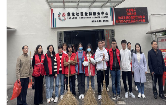 的15名青年志愿者们,冒着秋日的小雨来到盘龙社区进行卫生清扫。