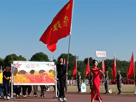 秋季运动会在主校区田径场盛大开幕。田径场晴空万里,艳阳高照。管理学院方阵整齐划一,迈着矫健的步伐,朝气蓬勃地向主席台走来。他们的舞蹈中洋溢着青春的热情,微笑中散发着自信的光芒。“管理英才,继往开来,管院雄风,谁与争锋”。嘹亮的口号展现了他们必胜的决心。精彩的开幕式结束后,运动会正式开始。