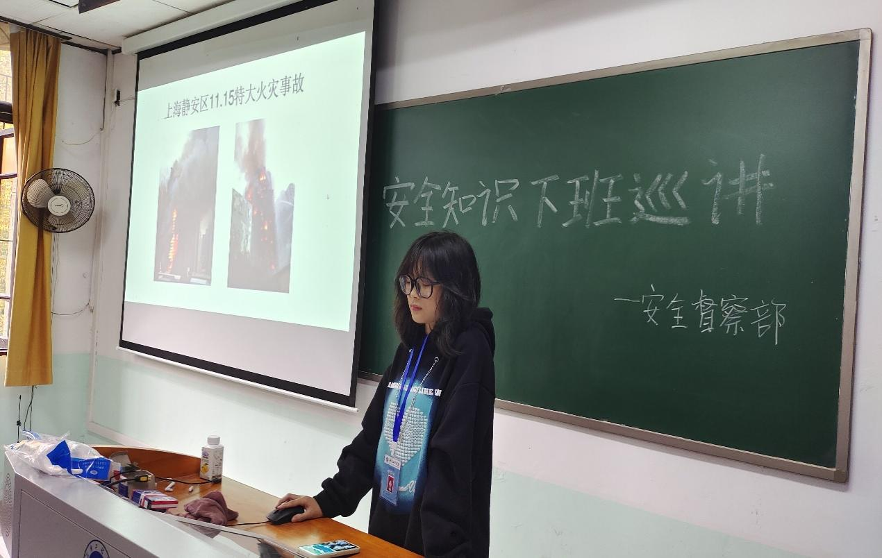 管理学院以“119消防宣传日”为契机,大力宣传安全消防知识,并于11月16日下午13:00在南校区第三、第四教学楼举行“安全消防知识”下班巡讲。此次活动由安全督察部负责,管理学院大一全体学生参与。