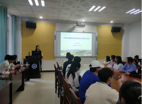 随后,管理学院创新创业专干陈祎婷邀请学院成功立项2022年大学生创新创业国家级、省级项目的四位项目负责人在新校区F104会议室进行赛事宣讲、参赛经验分享。“此次大学生创新创业项目宣讲活动,让我对大赛有了一个全面了解。宣讲人讲述生动幽默、专业系统,从寻找团队到做好项目,对从项目构思到项目计划书撰写,再到PPT制作、路演汇报、文本修改完善等全过程有了更加全面的认知,也对比赛有了更加深入的了解。”工商管理2102班朱敏同学表示。