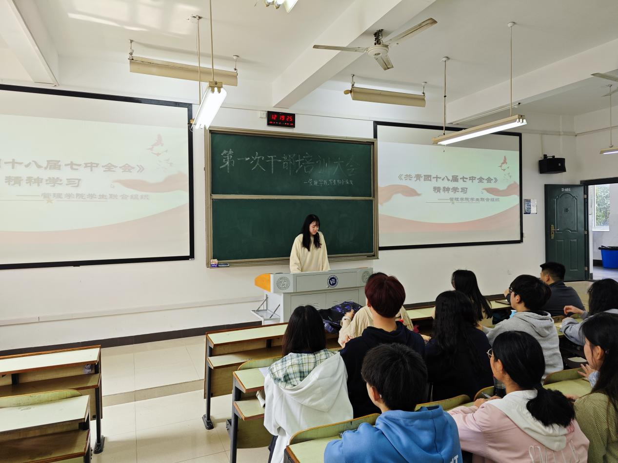 3月7日,管理学院学生联合组织在D401举行本学期第一次干部培训大会。全体学生干部和主席团成员参加本次会议。