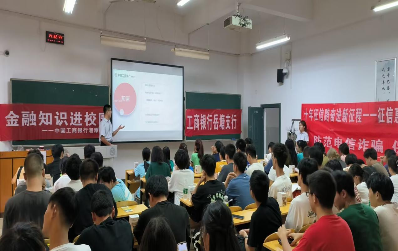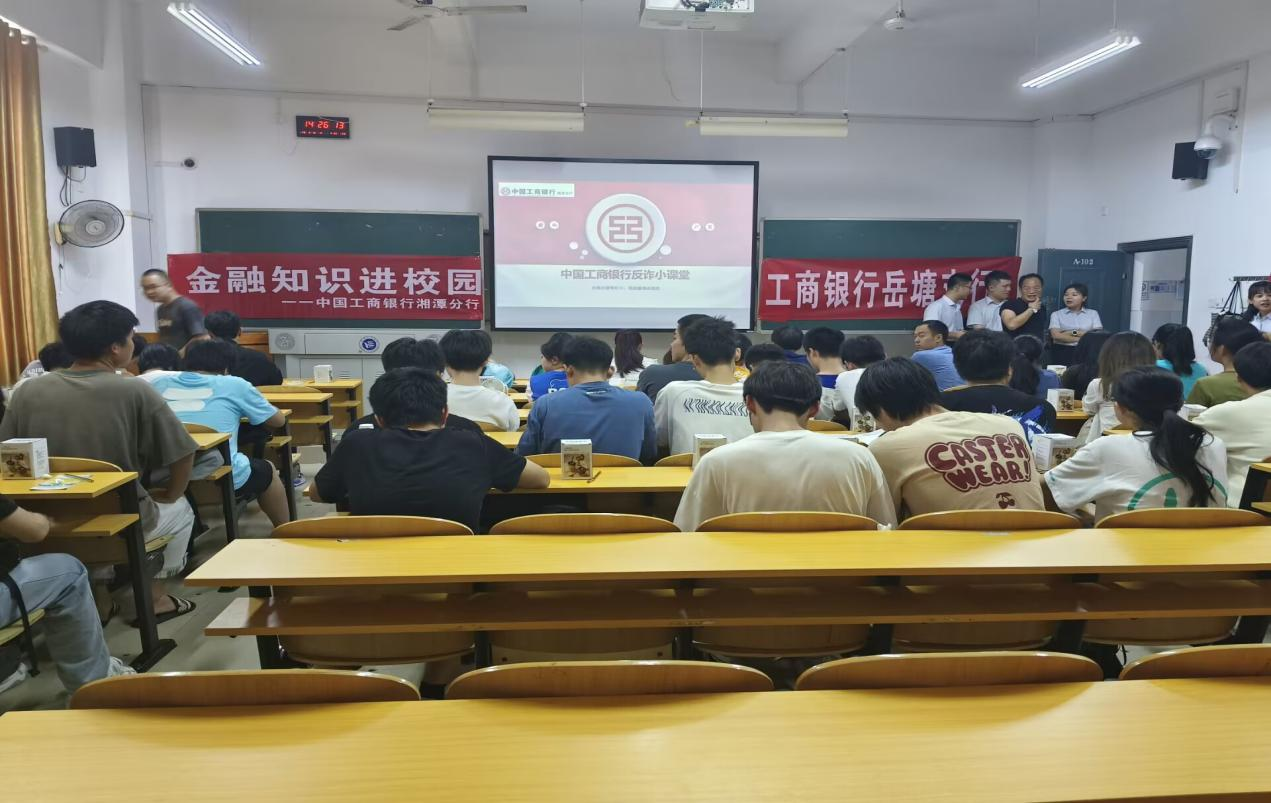 管理学院邀请中国工商银行岳塘支行到校内进行金融知识宣讲。宣讲活动于6月14号下午三点在主校区a102进行,由专业的工作人员主持。