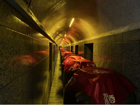 麻姑井糯米黄酒以醇馥幽郁、余味悠长的口感酿造了一段传奇,在周平先生的带领下,观察团来到日月洞,酒窖洞口的提词“洞小乾坤大,心宽日月明”道出了麻姑井酿黄酒的底蕴与魅力,往里,经过一条长廊,便是另一番天地。一条条四通八达的地道,两旁分布着一个个约一人高的拱洞,越往里走越找不到出口,如迷宫一般。“我们窖藏时间最长的一坛酒,是1999年,第一个窑洞刚挖好时埋进去的。”周平先生如是说。