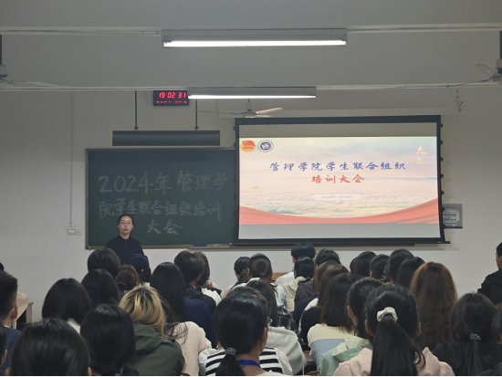 为进一步提升学生会干部的综合素质和工作能力,为组织的持续发展注入强劲动力,管理学院于11月14日19时在南校区第四教学楼203举行学生联合组织培训大会。此次会议分为主题培训与线下考试两部分,由学院团总支书记李林以及学联五位主席领讲,培训对象为学联各部门干部干事。