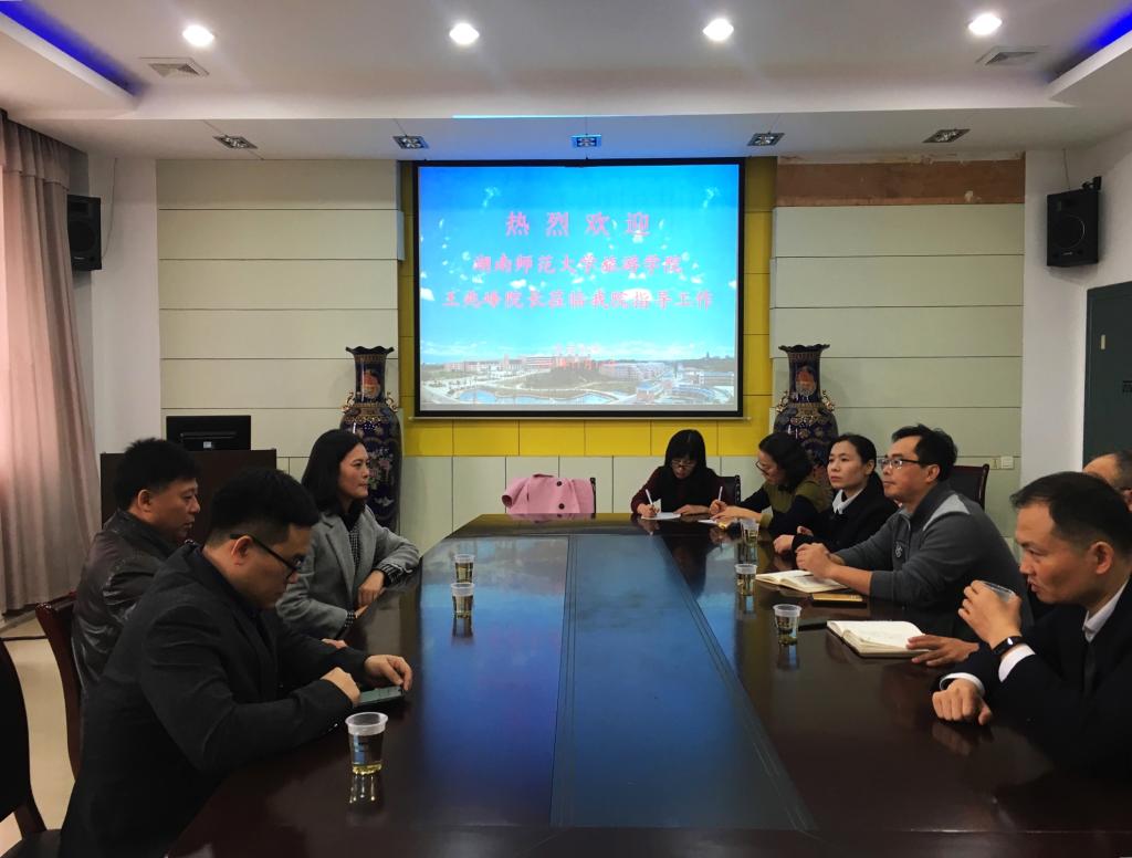 张建新院长对王兆峰教授一行人的到来表示热烈欢迎,并介绍了我校管理学院及旅游管理专业的建设和发展情况。王兆峰教授对我校管理学院承办第七届湖南省大学生旅游专业综合技能大赛主题遴选、进程安排等相关事宜进行初步指导,希望把明年的专业技能大赛办成一次体现地域特色、专业特色与高校人才培养创新相结合的高水平、高层次的学科竞赛。