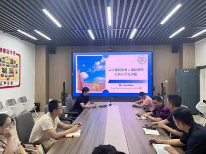 在F103会议室举办国际期刊撰写与投稿经验交流讲座。本次讲座特邀韩国釜山大学牟健教授担任主讲嘉宾,副院长曾贵主持,全体博士教师参加了学习。