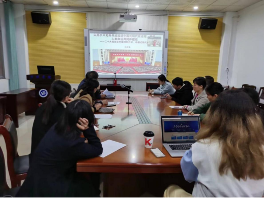 师生做了题为“以高水平对外开放推动人类命运共同体建设——二十大报告论中国对外开放”的讲座,讲座采取线上及线下相结合的方式进行,学院相关领域教师参与了讲座,学院分管学科科研的副院长潘立军主持讲座。