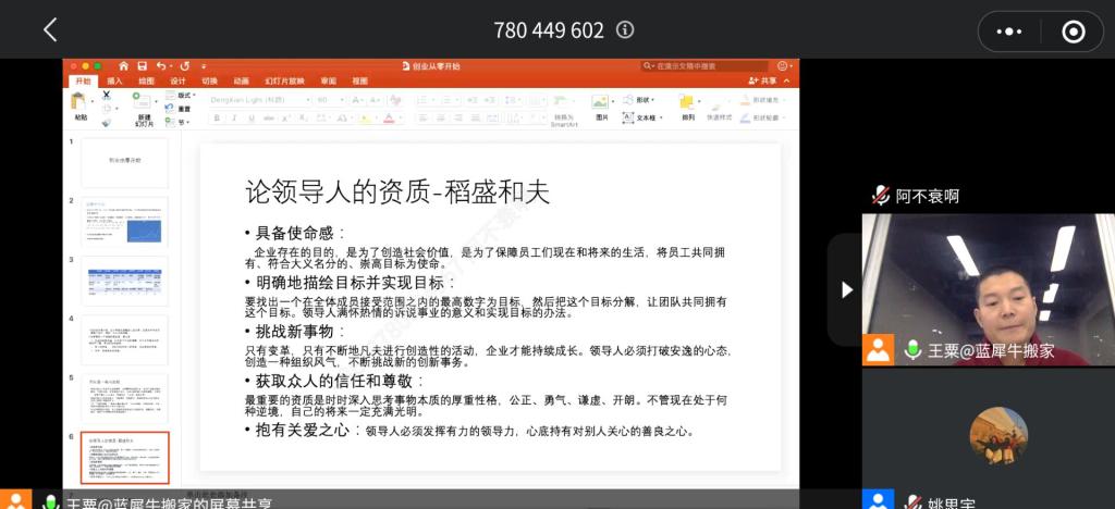 工商管理专业;2008年就职于阿里巴巴b2b,2012年就职于易到用车,2013年初创立蓝犀牛搬家,互联网搬家的领先者,国家高新技术企业。并于2014、15年累计获得2600万美金的君联、百度和富达的投资。目前公司全国覆盖28个城市,用户使用量居首位。本次“创业从零开始”讲座,管理学院17-20级共有500余名学生参与。