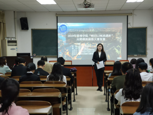 管理学院主办,管理学院学生联合会就业服务部承办,深圳市西遇时尚服饰有限公司协办的“管理学院2019年“WESTLINK西遇杯”应聘模拟演练大赛”复赛在教学楼G505如期举行。