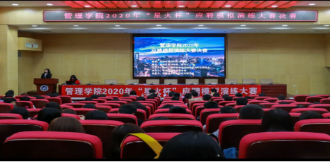 管理学院团总支学生联合会主办,管理学院就业服务部承办,珠海星火教育有限公司协办的应聘模拟演练决赛在我校图书馆二楼报告厅顺利举行。本次大赛有幸邀请到星火教育人力资源经理金竹云、星火教育教师选拔与培训经理曾盼、星火教育校园招聘专员冯水都、富安娜人力资源中心总监杨彬、富安娜中战区总监姚凯,12位选手参加本次比赛,共200多人观看本次比赛。