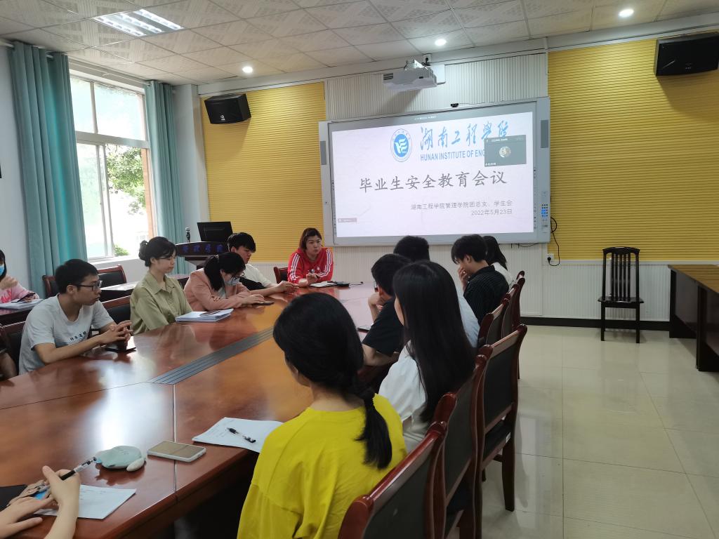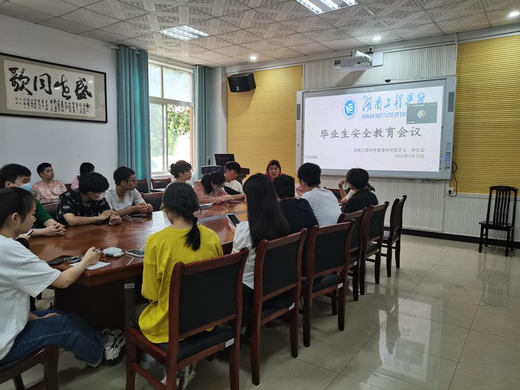 为深入贯彻与执行教育部发布的相关就业指导性意见,扎实推进管理学院2022届毕业生在疫情防控状态下的毕业工作,同时提高毕业生在就业、生活等方面的安全意识,5月23日13点30分,管理学院2022届毕业生安全教育暨毕业班班委会议在新校区F104室顺利召开,本次会议采用线上线下同步进行的方式,管理学院2022届全体毕业生参与会议,管理学院就业工作负责人包海燕出席会议并对就业工作作出明确指示。