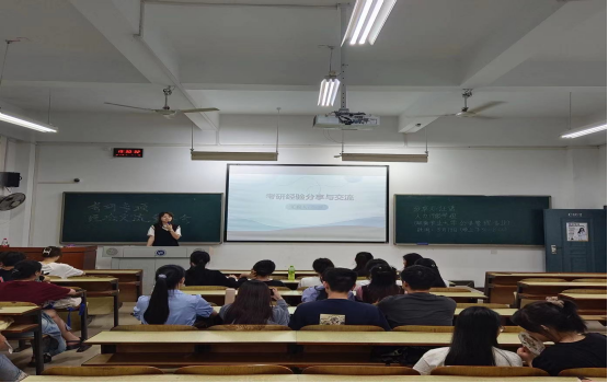 考研专场的主讲人是人力19级汪蓝学姐,她围绕学校、专业、地区与参考维度展开分享了自己择校、择专业的经验以及建议,又从英语、政治和专业课三个方面说明自己的学习进度安排来给同学们做参考,说明了基础、积累的重要性;考公专场的主讲人是旅游管理19级黎广杰学长,他就自己的经验致力于让同学们〝少走弯路〞,分析了适合当公务员的人群,坚定了同学们的决心,使同学意识到行测与申论的重要性,为同学们的备考提供了策略与思路。