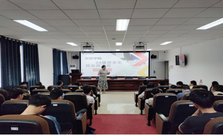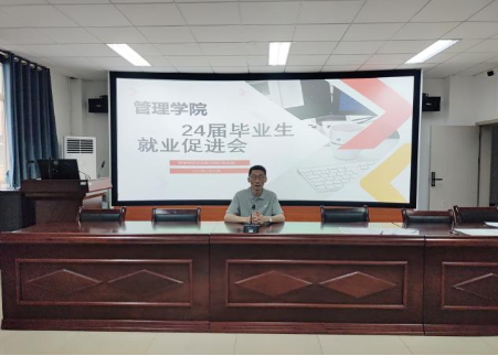 在F510会议室举办2024届毕业生就业指导专题讲座。管理学院党委副书记谭超主持讲座。全体辅导员及在校毕业生参加。