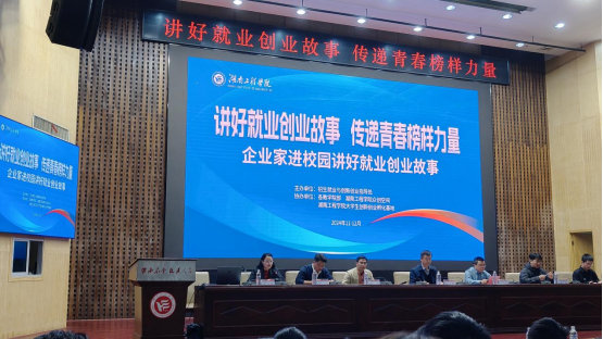 为提升学院学生创新思维和创业热情,培养创新创业能力,帮助大学生今后创业打下坚实基础。12月1日下午两点,我校在主校区图书馆一号报告厅举行了“讲好就业创业故事,传递青春榜样力量”主题讲座。本次讲座邀请湖南科技大学创新创业学院院长刘东海,湘潭大学“数字经济赋能乡村振兴”创新创业教育中心负责人田小文,优秀校友姜腾、舒翔和在校研究生苏焱鸿及校领导。