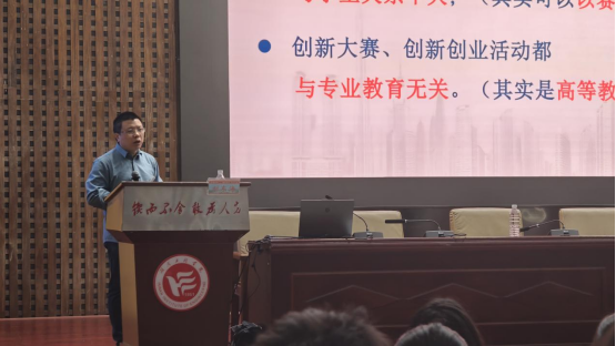 讲座伊始,主持人上台发言并对刘东海博士、田小文博士、优秀校友和学校领导以及参会学生表示热烈欢迎。随后,刘东海博士结合多年教学教育经验,为同学们分享如何去打一场完美的创新创业类的比赛,并以自身经历阐述“没有付出,项目就会止步”的道理。