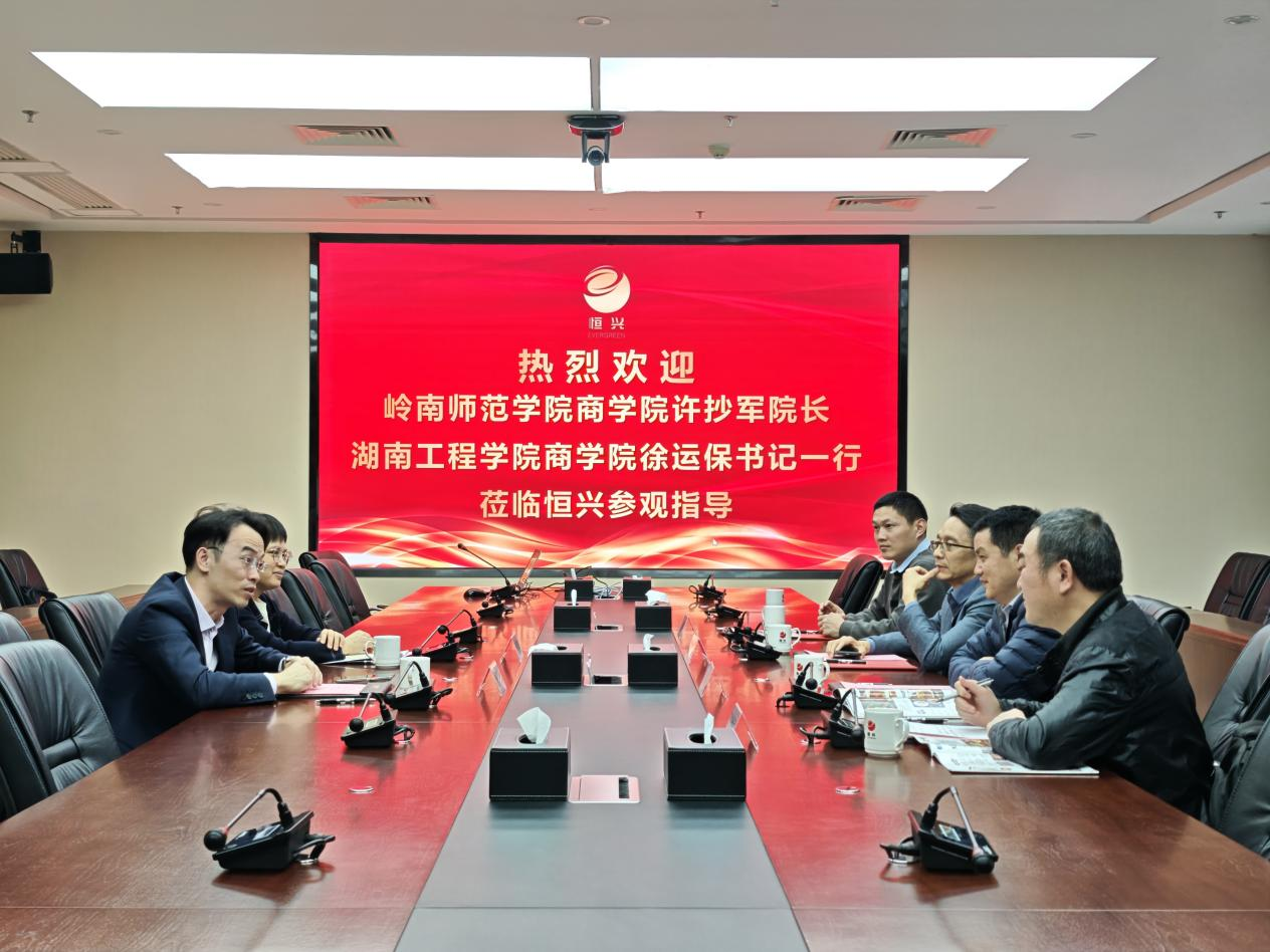 、广东石油化工学院经济管理学院,并深入广东恒兴集团有限公司进行实地调研,围绕硕士学位点建设、学科专业发展、人才培养、学生实习就业、产学研合作以及实验室建设等议题展开了深入探讨与交流。